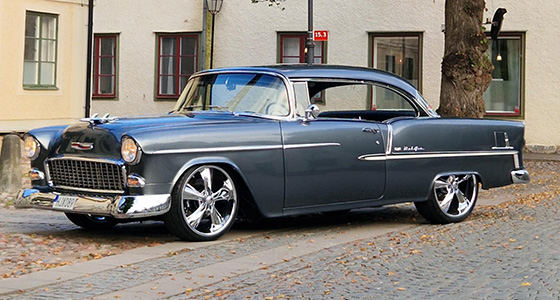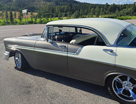 Chevrolet Bel Air -55. Gammal bil med modern motor och drivlina och omgjord inredning av Sybo. Ägare Staffan Persson