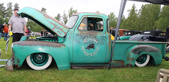 Pickupen är en Chevrolet 3100 från 1952, den är byggd av paret Emelie Grannas Gulliksson och Jonas Westerberg. Emelie lackar och Jonas är plåtkonstnär...