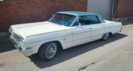 Chevrolet Impala 1964 4d HT. Den har 409 och Powerglide med matching numbers. Ägare: Ulf Bomberg
